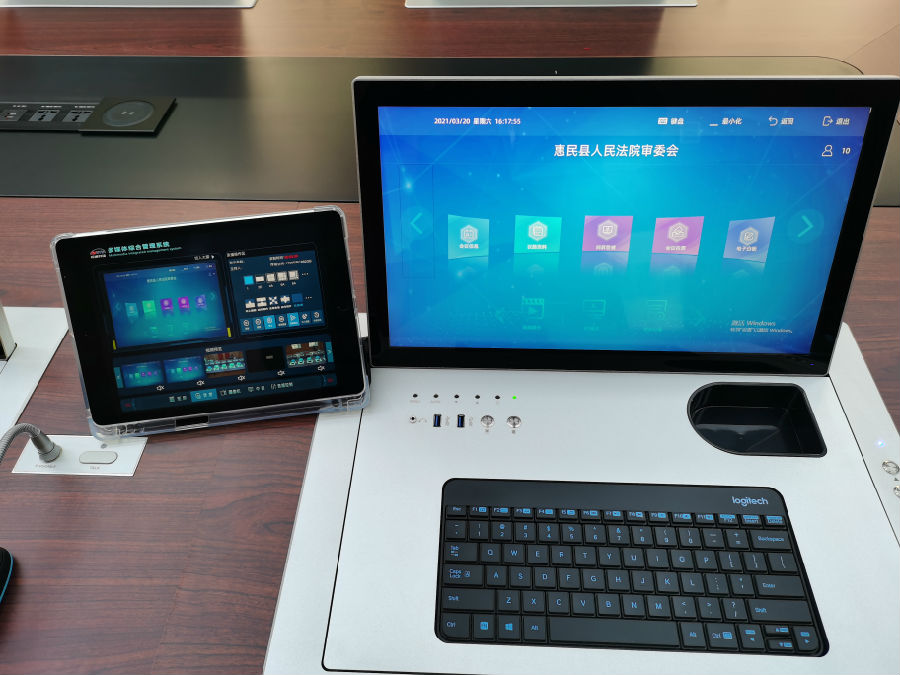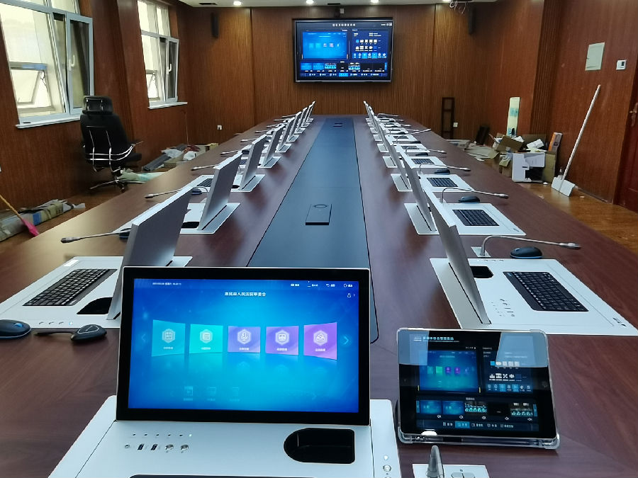 审委会会议室总面积约60平方米,最大可容纳50人参会,视通科技根据审委会的日常工作需求进行准确功能定位,使用视通科技(AVSYS)自主研发生产的UT综合一体机作为多媒体会议系统的核心设备,实现会议召开时高质量、高效率的语音、视频、控制、录制等功能,保证了整个系统中各设备之间、分系统之间的匹配和谐调工作。