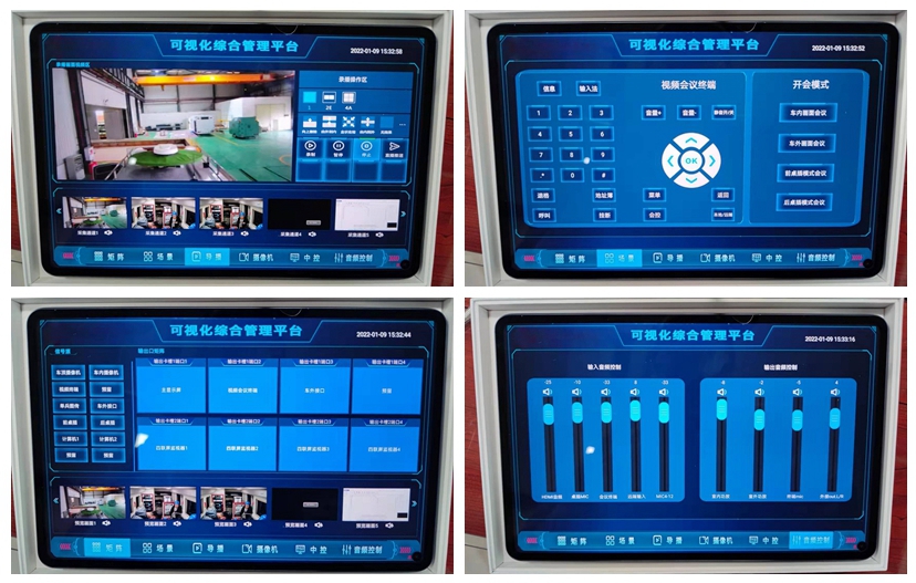 项目采用4台视通科技UT2主机+4台IMC3.0,保证现场音视频指挥调度、画面切换、统一控制管理等应用。UT2具备六大功能合一:集成音频处理器、视频无缝混矩、可编程中控、录播编解码、视频会议终端、多方视频会议六大模块,产品具有安装简便,操作简单、维护容易等优点;控制界面采用可视化综合管理平台IMC3.0,实现统一管控、音视频调度等应用。